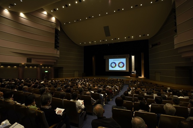 4月20日(金)甲府市総合市民会館芸術ホールにおいて、7回目となる市民公開講座を開催しました。基調講演は、厚生労働省「健康日本21」推進委員会委員や任天堂「Wii Fit Plus」の開発アドバイザーを務め、テレビや雑誌、各地の講演会など多方面で活躍する国立健康・栄養研究所の身体活動研究部長、体育科学博士の宮地元彦先生を招き、「ロコモと認知症を予防する運動~いつまでも元気に動けるカラダづくりを~」と題して講演していただきました。