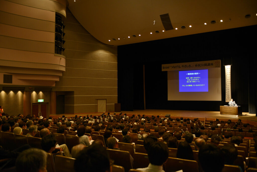 5月12日(金)に甲府市総合市民会館芸術ホールにおいて、6回目となる市民公開講座を開催しました。基調講演は、AGE研究の第一人者である久留米大学医学部教授の山岸昌一先生を招き、「老化物質AGE発見!糖化を防いで健康寿命を延ばす食養生」と題して講演していただきました。当日は多くの皆様にご来場いただき、「AGEの事がよくわかった。」「とても楽しく勉強になった。」「これからの生活に取り入れたい。」など、たくさんの感想が寄せられました。皆様、ご来場ありがとうございました。