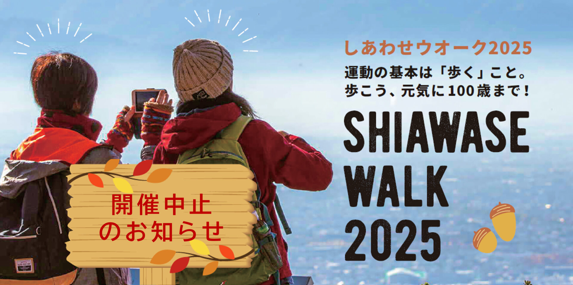 11月22日に開催を予定しておりました「しあわせウオーク2025」につきまして、全国的にクマによる人身被害が多発し、県内でも目撃情報やイベントの中止が相次いでいることから、参加者の安全面を最優先し、本年度の開催を中止することといたしました。